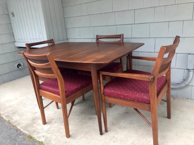 Complete dining room set by american of martinsville $700 (huntington beach) pic hide this posting restore restore this posting. 26 wide x 40 deep x 30 high table with two leaves measures : Manufactured in the 1960s, the table and chairs combine the beauty of scandinavian lines, the warmth of walnut wood, and the sturdiness of american craftsmen. This complete vintage walnut dining set consists of a dining table with two 12 inch eaves and six caned back chairs. The table comes wit two removable leaves.